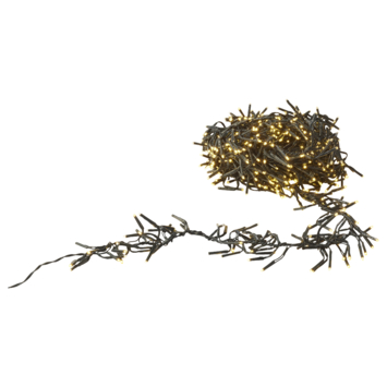 Clusterverlichting voor binnen- en buitengebruik met 768 LED lampjes. De kerstverlichting is 7,5 meter lang (inclusief 3 meter aanloopsnoer) en heeft 8 standen voor verschillende lichtfuncties. Clusterverlichting is verlichting waarbij kleine lichtpunten heel dicht op elkaar in het snoer zitten. Het snoer kun je als een slinger om de boom hangen. Deze kerstverlichting is ideaal geschikt voor bomen van 180 cm.
