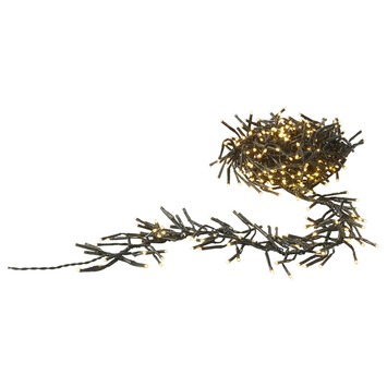 Clusterverlichting voor binnen- en buitengebruik met 432 LED lampjes. De kerstverlichting is 7,2 meter lang (inclusief 5 meter aanloopsnoer) en heeft 8 standen voor verschillende lichtfuncties. Clusterverlichting is verlichting waarbij kleine lichtpunten heel dicht op elkaar in het snoer zitten. De snoer kunt u als een slinger om de boom hangen. Deze kerstverlichting is ideaal geschikt voor bomen van 150 cm. De LED verlichting is ook verkrijgbaar in 768 lampjes.