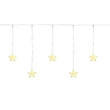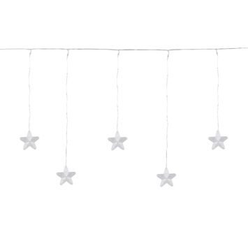 Kerstverlichting gordijn met LED lampjes in de vorm van sterretjes. De afmeting van de snoer is 400x68cm.