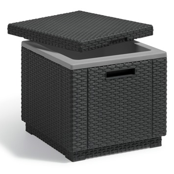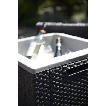 We hebben de icecube aan het begin van de zomer gekocht. Geen gedoe meer om binnen om iets fris te hollen... en een extra gast die kan zitten op het terras om drank te bewaken! Houdt koel en past perfect bij de rest van het Allibert-gamma...