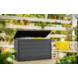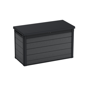 In de zeer ruime Keter Cortina opbergbox (757 liter) passen alle tuinkussens en andere spullen. Alles zit er droog in opgeborgen. De tuinbox kan worden afgesloten met een hangslot (niet meegeleverd). De kussenbox heeft een aantrekkelijke houtlook en is gemaakt van duurzaam, weerbestendig kunststof. Het deksel is voorzien van gasveren.