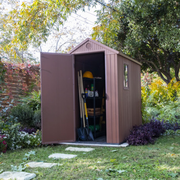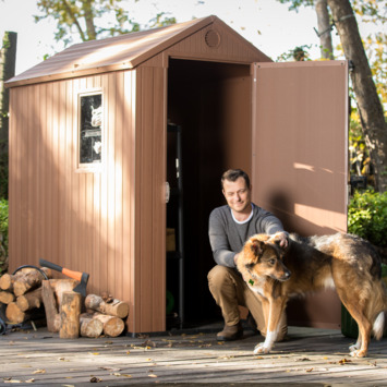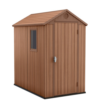 Ben je op zoek naar een kast voor het balkon, in de tuin of garage? De Keter Darwin 46 bruin woodlook is een kunststof kast met een houten look uit de Keter kunststof tuinhuizencollectie. Deze Keter tuinkast is de perfecte oplossing voor het opbergen van gereedschap, tuingereedschap, tuinkussens en andere tuinaccessoires. Zo zorgt de openslaande deur voor een makkelijke toegang en kunnen er op het stevige vloerpaneel zwaardere spullen als barbecues en tuingereedschap opgeslagen worden. En mocht je spullen hebben waarvan je niet wilt dat bijvoorbeeld je kinderen erbij kunnen, dan zijn de deuren af te sluiten met een slot (niet inbegrepen). Na levering kan de Keter Darwin 46 kunststof opbergkast direct worden opgebouwd, mits een vlakke ondergrond is voorbereid. Twee personen zijn er ongeveer 2-3 uur mee bezig om het Keter huisje op te bouwen.