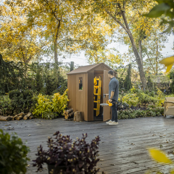 - Inclusief stevig vloerpaneel, geschikt voor het opslaan van zware spullen zoals barbecues en grasmaaiers.