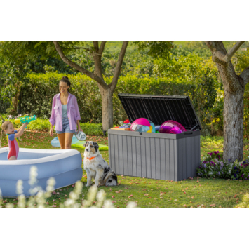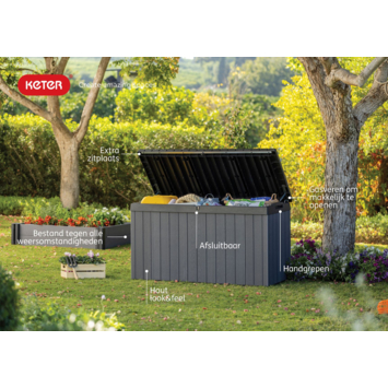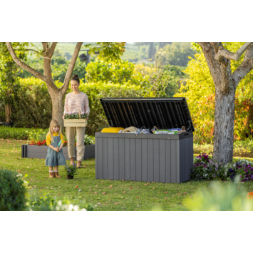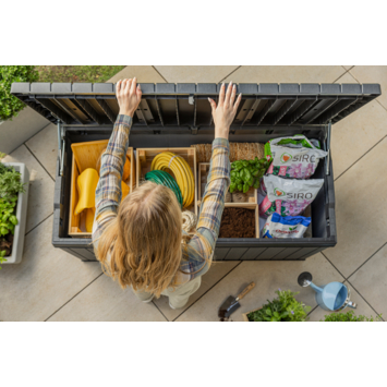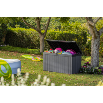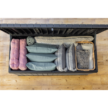 De Keter Darwin opbergbox tuin antraciet 570 liter is een praktische opbergbox voor tuinkussens, speelgoed en gereedschap. Met een inhoud van 570 liter heb je voldoende ruimte om spullen netjes en uit het zicht op te bergen. Zo blijft je terras of tuin overzichtelijk en opgeruimd.