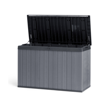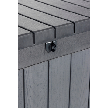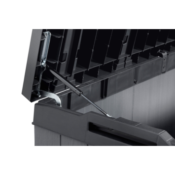 Dankzij de gasveren opent en sluit het deksel soepel. De opbergbox is ook geschikt als zitplaats voor 2 volwassenen met een maximale belasting van 220 kg. De box is afsluitbaar met een slot (niet inbegrepen).
