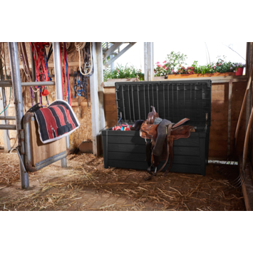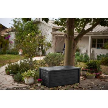 Goede stevige doos, passen alle tuinkussen in, hij gaat ook goed dicht