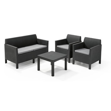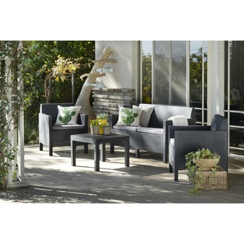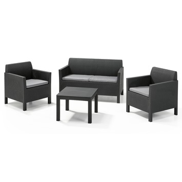 - Inhoud set: Loungebank, 2 stoelen, 1 tafel