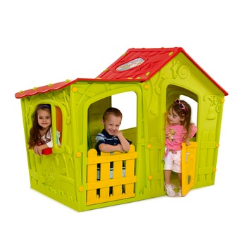 De Magic Villa van Keter is een kunststof speelhuisje voor kinderen vanaf 2 jaar. Dit speelhuis heeft een sprookjesthema met decoratiewanden. Het huisje heeft 2 ramen met een vensterbank en 1 deur om bij het huisje naar binnen te kunnen. Het speeltoestel is gemakkelijk op te bouwen en te reinigen. Het is gemaakt van hoogwaardig kunststof waardoor het niet zal gaan rotten of roesten, en dus nauwelijks onderhoud nodig heeft. Het zal u tuin opvrolijken door de speelse kleuren.