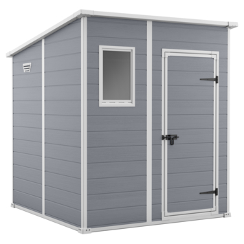 Dit tuinhuis, de Keter Manor Pent 66 is perfect voor het bewaren van verschillende gereedschappen en uitrustingen. Het heeft een schuin dak en een deur voor gemakkelijke toegang. Dankzij het smalle ontwerp maximaliseert deze schuur de beschikbare ruimte en is hij gemakkelijk te installeren tegen een hek of de zijkant van je huis. Hij is gemaakt van weerbestendig en onderhoudsvrij kunststof en is duurzaam, slijtvast en ongevoelig voor roest, rot en andere schade. Hij heeft een moderne uitstraling dankzij zijn grijze muren met witte randen. Het schuurtje heeft een ventilatieopening en een raam voor extra ventilatie en natuurlijk licht. Een vloerpaneel is bij de levering inbegrepen. Dit tuinschuurtje is gemakkelijk te monteren met standaard gereedschap en ziet er geweldig uit in elke buitenruimte.