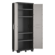 De Keter Opbergkast met schappen Pro zwart en grijs biedt een strakke, moderne en minimalistische look met zijn zwarte en grijze structuur en aluminium handgrepen. Deze kast is voorzien van vier verstelbare legplanken met metalen stangen die elk een draagvermogen van 20 kg hebben, waardoor je gemakkelijk al je spullen kunt organiseren.