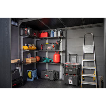 De Keter Wandplankset 100 is een praktische uitbreiding voor je Keter tuinhuis. Met drie ruime opbergschappen van 97 cm lang organiseer je je tuinhuis overzichtelijk en efficiënt. De planken zijn in hoogte verstelbaar, zodat je de indeling aanpast aan wat je wilt opbergen. Je monteert de wandplanken eenvoudig aan de muur van je Keter tuinhuis, behalve bij de Factor-lijn. Door spullen zoals gereedschap, verfblikken of onderhoudsproducten aan de wand te plaatsen, houd je meer vloerruimte over voor grotere items.