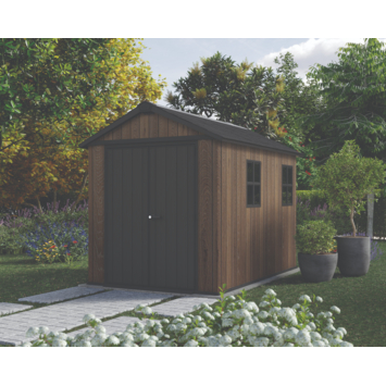 Het Keter Signature 759 tuinhuis 287 x 230 x 246 cm heeft een traditionele puntdakvorm en combineert die met het gemak van kunststof. De wanden zijn uitgevoerd in DECoCOAT, een sterke kunststof met een natuurlijke houtstructuur. Zo krijg je een warme houtlook zonder dat je hoeft te schilderen of beitsen.