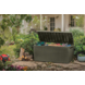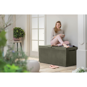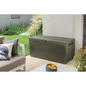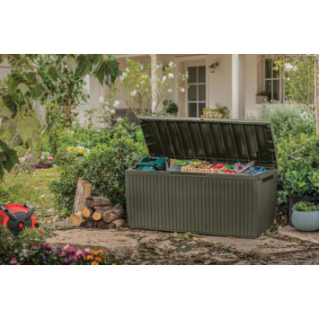 De Keter Springwood opbergbox tuin 305 liter is een kussenbox waarin je eenvoudig tuinkussens en andere tuinspullen opbergt. Met een inhoud van 305 liter heb je voldoende ruimte voor spullen die je droog en netjes wil bewaren. Dankzij de weerbestendige constructie blijft de inhoud beschermd en geventileerd. De afmeting van de box is 123 x 53,5 x 57 cm.