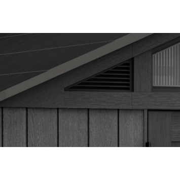 De wanden zijn gemaakt van Evotech+ panelen met houtlook. Dit materiaal rot, bladdert, deukt of verkleurt niet en is bestand tegen verschillende weersomstandigheden. Je hoeft het tuinhuis niet te schilderen of te behandelen. Het totale gewicht bedraagt 305 kg en het wordt geleverd in 3 pakketten.