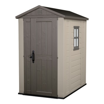 Het Keter Factor 46 tuinhuis helpt je om je tuin netjes te houden. Je bergt er eenvoudig spullen in op die je droog en veilig wilt bewaren, zoals tuinkussens, fietsen of kinderspeelgoed. De dubbele deuren en aflopende vloer zorgen ervoor dat je er makkelijk in en uit loopt – of rijdt. Het huisje is gemaakt van kunststof en versterkt met aluminium, dus het kan goed tegen regen en wind. Binnen zorgen een raam en transparant dakdeel voor daglicht. De ventilatieroosters houden de binnenruimte fris. Je zet het huisje eenvoudig zelf in elkaar. De deuren zijn afsluitbaar met een hangslot (niet inbegrepen).