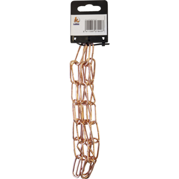 De ketting verkoperd 23x11x2,5mm 1 meter heeft een koperen kleur en glanst mooi. Hierdoor kan de ketting voor diverse decoratieve doeleinden gebruikt worden. De ketting is 1 meter lang en heeft een maximale draagkracht van 6 kilogram. Hang er bijvoorbeeld een lamp aan of gebruik het voor het ophangen van hangpotten. Kortom, deze sierketting is op vele manieren te gebruiken.