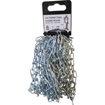 De geknoopte Victorketting wordt gebruikt voor diverse doeleinden, waaronder het ophangen van verlichting, hangplantpotten en andere hangproducten. De ketting Victor verzinkt 1,8mm 5 meter is verzinkt, waardoor hij beter bestand is tegen corrosie en de levensduur wordt verlengd. De ketting is 5 meter lang en heeft een maximale draagkracht van 7kg. Kortom: de Victorketting is een goede ketting om dingen aan op te hangen.