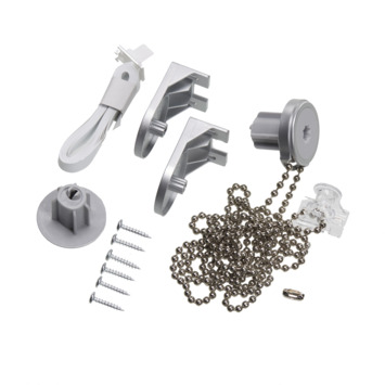 Geef uw rolgordijn een stoere uitstraling en kies voor een decoratief kettingmechanisme in zilveren kleur met aluminium bedieningsketting. De montagesteunen zijn uitgevoerd in bijpassend zilveren kleur.
