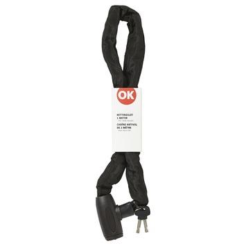 Met het kettingslot OK haalt u een betrouwbaar slot in huis. Het slot is gemaakt van gehard staal, wat moeilijk door te knippen is. Dankzij de canvas hoes voorkomt u beschadigingen aan uw fiets, scooter of aanhangwagen. Afmeting: 1 meter. Kleur: zwart. Geleverd met 2 sleutels.