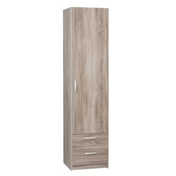 Orden je spullen overzichtelijk in de Kim garderobekast 1-deurs gelamineerd spaanplaat truffel eiken 201x50x50 cm. Deze praktische 1-deurskast is onderdeel van de kasten- en kleinmeubelserie Kim. De kast heeft een mooi truffeleiken uiterlijk en is tevens leverbaar in een 2- of 3-deursuitvoering. De kast heeft 4 legplanken en 2 lades die voor veel opberggemak zorgen. De deur en lades van de Kim-garderobekast zijn voorzien van een moderne kunststof greep en de lades zijn uitgevoerd met solide metalen ladegeleiders. De kast is uitstekend te combineren met andere meubelen, waaronder (lade)kasten uit de Kim-serie. Kortom: ruim spullen overzichtelijk op in deze 1-deurs white wash Kim-garderobekast.