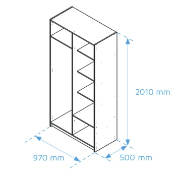 Zoek je een functionele en mooie garderobekast? Kies dan voor de Kim garderobekast 2-deurs gelamineerd spaanplaat truffel eiken 201x97x50 cm. De 2-deurskast is onderdeel van de kasten- en kleinmeubelserie Kim. De kast heeft links een hanggedeelte met boven de roede een legplank. Het rechterdeel bestaat uit 4 legplanken met daaronder 2 lades, wat zorgt voor veel opberggemak. De deur en lades van 2-deurs Kim-garderobekast zijn voorzien van een moderne kunststof greep en de lades zijn uitgevoerd met solide metalen ladegeleiders. De kast heeft een mooi truffeleiken uiterlijk en is tevens leverbaar in een 1- of 3-deursuitvoering. De garderobekast is uitstekend te combineren met andere meubelen, waaronder (lade)kasten uit de Kim-serie. Niet voor niets is de 2-deurs garderobekast Kim een aanwinst voor iedere kamer.