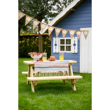 Ben je op zoek naar de ideale plek waar de kleintjes hun avonturen kunnen beginnen, vriendjes kunnen uitnodigen en herinneringen kunnen maken? Onze geïmpregneerde kinderpicknicktafel biedt de perfecte omgeving voor plezier en creativiteit. Met zitplaats voor 4 kinderen en een ruim tafelblad van 90 x 38,5 cm voor snacks, knutselwerkjes en spelletjes, is onze kinderpicknicktafel perfect voor gezinspicknicks, verjaardagsfeestjes of gewoon een leuke speeldag in de achtertuin.