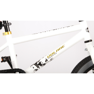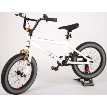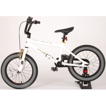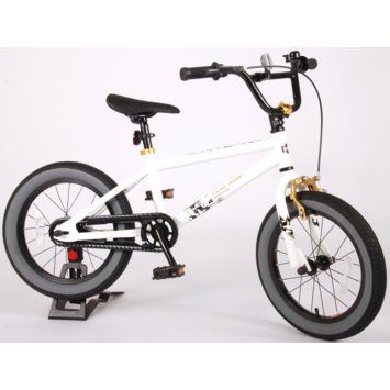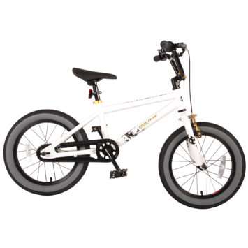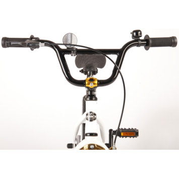 Volare Cool Rider 16 inch jongensfiets 95% afgemonteerd. Voor alle superstoere jongens heeft Volare een fiets gemaakt die qua uiterlijk niet onderdoet voor een echte BMX fiets. Omdat hij van de beste materialen is gemaakt, is hij zeker geschikt om mee rond te crossen! Zo is hij voorzien van stevige wielen met aluminum velgen en stalen spaken, zowel een terugtraprem als een handrem, en een fietsbel. De fiets heeft een hoog stuur. Ga de straat op, rijdt naar het skatepark en leef je uit! Deze fiets is voor 95% afgemonteerd, dus hij is bijna fietsklaar. Wel zo gemakkelijk!