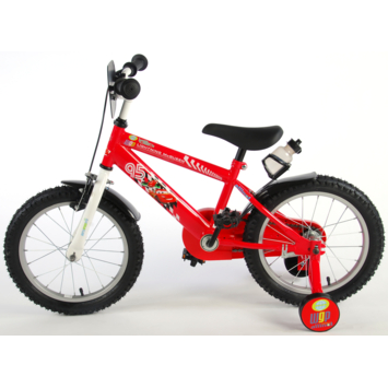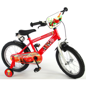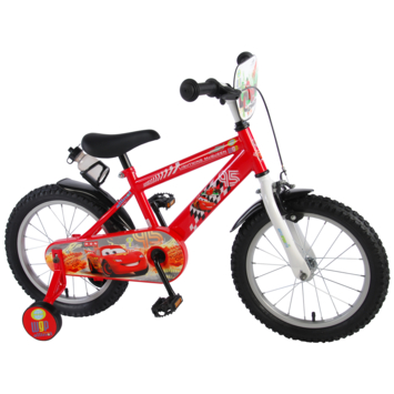 Disney Cars 16 inch jongensfiets. De film van Disney Pixar kent elke jongen. Deze Cars kinderfiets is werkelijk een topper, net als de film. Super mooi, stoer en modern frame. Elke jongen maakt met deze stoere fiets de Blitz. Deze fiets heeft een bidonhouder. Vroeeeemmm daar ga je net zo snel als Bliksem McQueen. Met stevige zijwielen om snel te leren fietsen. Official Licensed Disney Product.