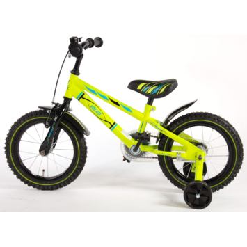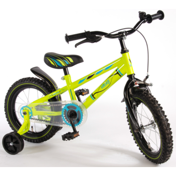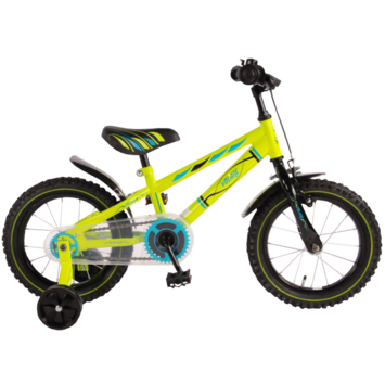 Volare Electric Green jongensfiets 14 inch. De Volare kinderfietsen zijn kwaliteitsfietsen voor een zeer vriendelijke prijs. Absoluut een goede koop. De Electric Green lijn is zeer sportief en de kleurencombinatie is fantastisch en zeer modern. Met stevige zijwieltjes om snel te leren fietsen en welke makkelijk te de-monteren zijn. Met terugtraprem en voorrem. Kettingkast is gesloten. Top kwaliteit voor een lage prijs! Deze fiets is voor 95% afgemonteerd, dus bijna fietsklaar. Wel zo gemakkelijk!