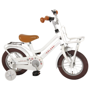 Volare Liberty 12 inch kinderfiets. Deze prachtige Volare Liberty kinderfiets is geliefd onder alle jonge meiden. De achterdrager van de fiets is geïntegreerd in het frame, waardoor de fiets een strak en modern uiterlijk heeft. Het zadel en stuur zijn beide in hoogte verstelbaar, dit zorgt ervoor dat de fiets met uw kindje mee kan groeien. Met de handrem en terugtraprem kan vaart worden geminderd. De fiets beschikt over zowel een voordrager als achterdrager, zodat ieder meisje haar spulletjes gemakkelijk mee kan nemen. Het zachte zadel en de handvaten zorgen voor extra comfort en ter bescherming van de kleine vingertjes is de kettingkast gesloten. Bovendien heeft de fiets een fietsbel om aan iedereen te kunnen laten weten dat je de hoek om komt. Met de afneembare zijwieltjes kan ieder kind snel leren fietsen. Deze fiets is voor 95% afgemonteerd, waardoor hij al bijna fietsklaar is. Zoefff, daar gaat je kindje, naar zijn vriendjes en vriendinnetjes!