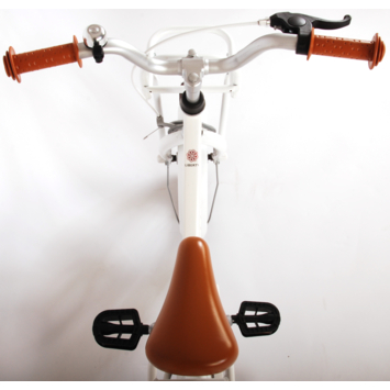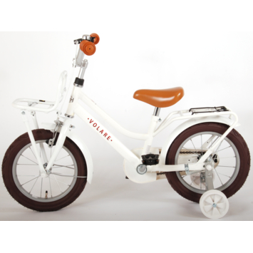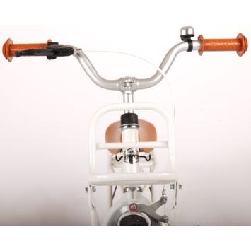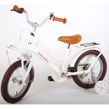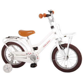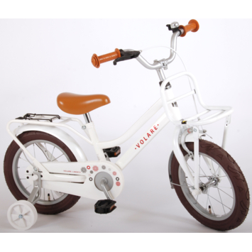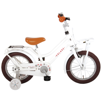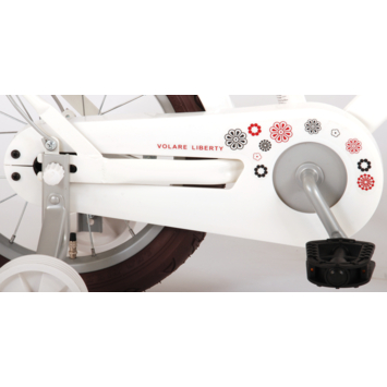 Volare Liberty 14 inch kinderfiets. Deze prachtige Volare Liberty kinderfiets is geliefd onder alle jonge meiden. De achterdrager van de fiets is geïntegreerd in het frame, waardoor de fiets een strak en modern uiterlijk heeft. Het zadel en stuur zijn beide in hoogte verstelbaar, dit zorgt ervoor dat de fiets met uw kindje mee kan groeien. Met de handrem en terugtraprem kan vaart worden geminderd. De fiets beschikt over zowel een voordrager als achterdrager, zodat ieder meisje haar spulletjes gemakkelijk mee kan nemen. Het zachte zadel en de handvaten zorgen voor extra comfort en ter bescherming van de kleine vingertjes is de kettingkast gesloten. Bovendien heeft de fiets een fietsbel om aan iedereen te kunnen laten weten dat je de hoek om komt. Met de afneembare zijwieltje kan ieder kind snel leren fietsen. Deze fiets is voor 95% afgemonteerd, waardoor hij al bijna fietsklaar is. Zoefff, daar gaat je kindje, naar zijn vriendjes en vriendinnetjes!