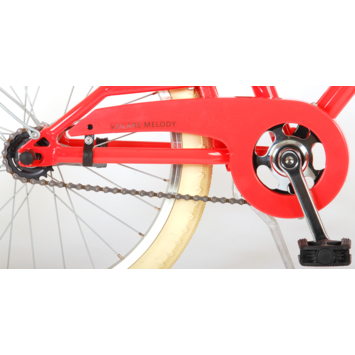 De prachtige kinderfiets Melody is van superieure kwaliteit. Het frame van deze fiets is gemaakt van ultra licht aluminium, slechts 12 kilo! Deze fiets met dit moderne frame, de stoere pistol type kettingkast en praktische voordrager is een must have voor iedere hippe meid. Om vaart te kunnen minderen heeft de fiets een veilig Aluminium V-brake systeem met en handrem en terugtraprem. Om de fiets makkelijk neer te kunnen zetten heef hij een sterk standaard. De handvaten zijn van Kraton, een heerlijk zacht rubber, waardoor deze lekkerder in de hand liggen en extra comfort bieden. De zadelbuis is extra laag met een extra lange zadelpen, waardoor de fiets met uw kind mee kan groeien. Daarnaast heeft de fiets een aluminium smart control systeem, dat ervoor zorgt dat het stuur begrensd is (niet in hoogte verstelbaar). Bovendien heeft de fiets voor- en achterverlichting. De fiets is voor 85% afgemonteerd. De 20 inch luchtbanden maken dat deze fiets geschikt is voor meiden tussen de 6 en 8 jaar oud met kledingmaat 116-122. Op deze hippe kinderfiets Melody wil iedere meid naar school fietsen!