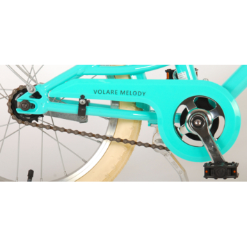 De prachtige kinderfiets Melody is van superieure kwaliteit. Het frame van deze fiets is gemaakt van ultra licht aluminium, slechts 12 kilo! Deze fiets met dit moderne frame, de stoere pistol type kettingkast en praktische voordrager is een must have voor iedere hippe meid. Om vaart te kunnen minderen heeft de fiets een veilig Aluminium V-brake systeem met een handrem en terugtraprem. Om de fiets makkelijk neer te kunnen zetten heeft hij een sterk standaard. De handvaten zijn van Kraton, een heerlijk zacht rubber, waardoor deze lekkerder in de hand liggen en extra comfort bieden. De zadelbuis is extra laag met een extra lange zadelpen, waardoor de fiets met uw kind mee kan groeien. Bovendien is het stuur in hoogte verstelbaar en heeft de fiets voor- en achterreflectoren.. De fiets is voor 85% afgemonteerd. De 16 inch luchtbanden maken dat deze fiets geschikt is voor meiden tussen de 4 en 6 jaar oud met kledingmaat 104-110.