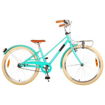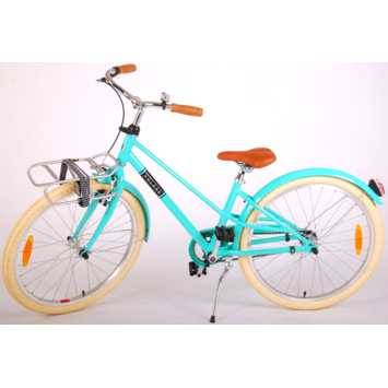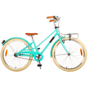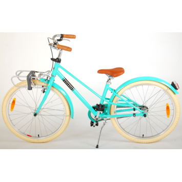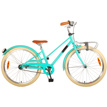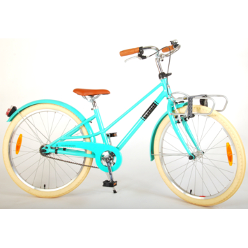 De prachtige kinderfiets Melody is van superieure kwaliteit. Het frame van deze fiets is gemaakt van ultra licht aluminium, slechts 13,5 kilo! Deze fiets met dit moderne frame, de stoere pistol type kettingkast en praktische voordrager is een must have voor iedere hippe meid. Om vaart te kunnen minderen heeft de fiets een veilig Aluminium V-brake systeem met handrem en terugtraprem. Om de fiets makkelijk neer te kunnen zetten heef hij een sterk standaard. De handvaten zijn van Kraton, een heerlijk zacht rubber, waardoor deze lekkerder in de hand liggen en extra comfort bieden. De zadelbuis is extra laag met een extra lange zadelpen, waardoor de fiets met uw kind mee kan groeien. Daarnaast heeft de fiets een aluminium smart control systeem, dat ervoor zorgt dat het stuur begrensd is (niet in hoogte verstelbaar). Bovendien heeft de fiets voor- en achterverlichting. De fiets is voor 85% afgemonteerd. De 24 inch luchtbanden maken dat deze fiets geschikt is voor meiden tussen de 8 en 10 jaar oud met kledingmaat 128-140. Op deze hippe kinderfiets Melody wil iedere meid naar school fietsen!