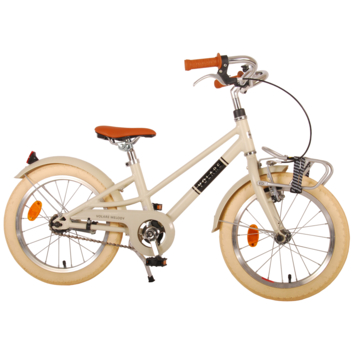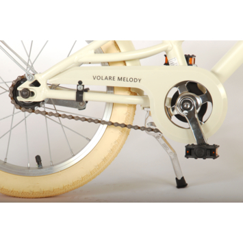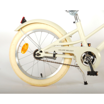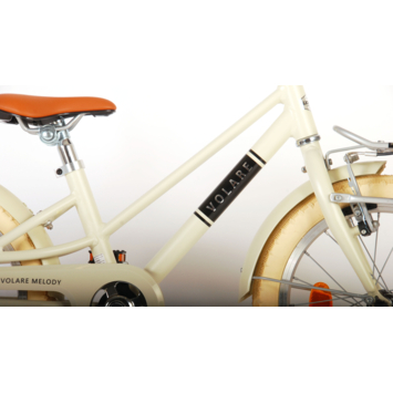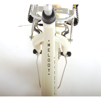 De prachtige kinderfiets Melody is van superieure kwaliteit. Het frame van deze fiets is gemaakt van ultra licht aluminium, slechts 12 kilo! Deze fiets met dit moderne frame, de stoere pistol type kettingkast en praktische voordrager is een must have voor iedere hippe meid. Om vaart te kunnen minderen heeft de fiets een veilig Aluminium V-brake systeem met een handrem en terugtraprem. Om de fiets makkelijk neer te kunnen zetten heeft hij een sterk standaard. De handvaten zijn van Kraton, een heerlijk zacht rubber, waardoor deze lekkerder in de hand liggen en extra comfort bieden. De zadelbuis is extra laag met een extra lange zadelpen, waardoor de fiets met uw kind mee kan groeien. Bovendien is het stuur in hoogte verstelbaar en heeft de fiets voor- en achterreflectoren. De fiets is voor 85% afgemonteerd. De 16 inch luchtbanden maken dat deze fiets geschikt is voor meiden tussen de 4 en 6 jaar oud met kledingmaat 104-110.