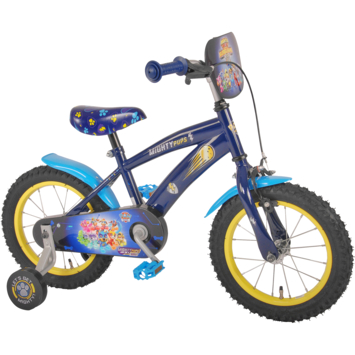 Paw Patrol Mighty Pups kinderfiets 14 inch. Paw Patrol Mighty Pups is de super leuke en spannende special van de Paw Patrol serie, speciaal voor de jongsten. Deze Paw Patrol 14 inch kinderfiets is werkelijk een topper, helemaal in de Paw Patrol kleuren met schitterende stickers en met een super mooi, stoer en modern frame. De fiets heeft afneembare zijwieltjes om snel te kunnen leren fietsen en de kettingkast is ter bescherming van de kleine vingertjes gesloten. Met deze fiets kan ieder kindje zo snel fietsen, waardoor het voelt alsof ze dezelfde krachten hebben als de Mighty Pups! Vroemmm, daar ga je! Paw Patrol Official Licensed Product. Deze fiets is voor 95% afgemonteerd, dus bijna fietsklaar. Wel zo gemakkelijk!