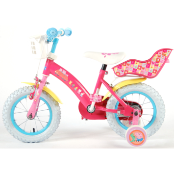 Voor ieder kind is leren fietsen een feestje met de Peppa Pig 12 inch kinderfiets! Veiligheid staat voorop! Daarom heeft deze gave fiets een handrem en terugtraprem en afneembare zijwieltjes. Ook aan het comfort is gedacht. De mooie roze Peppa Pig fiets heeft een comfortabel zacht zadel, een poppenzitje en een mandje. Om zo lang mogelijk van de fiets te kunnen genieten zijn het zadel en stuur in hoogte verstelbaar.
