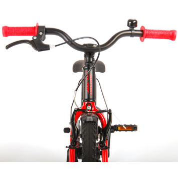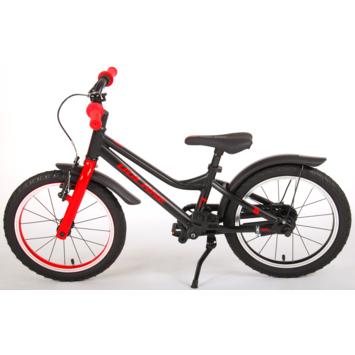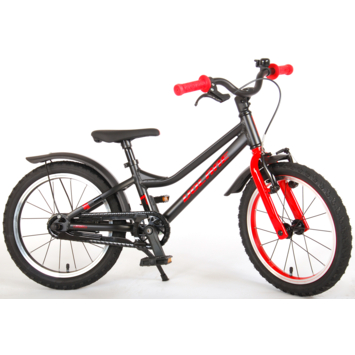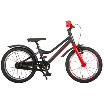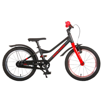 Volare Blaster 16 inch kinderfiets. De stoere Volare Blaster kinderfietsenreeks is van superieure kwaliteit. Het frame van deze fiets is gemaakt van ultra licht aluminium, slechts 5,9 kilo!. Ook onderdelen zoals het stuur en het fietsstandaard zijn uit aluminium vervaardigd. Om vaart te kunnen minderen heeft de fiets een veilig Aluminium V-brake systeem met zowel een handrem als terugtraprem. De fiets heeft geen zijwielen, maar een praktisch en sterk aluminium standaard. De handvaten zijn van Kraton, een heerlijk zacht rubber, waardoor deze lekkerder in de hand liggen en extra comfort bieden. De zadelbuis is extra laag met een extra lange zadelpen, waardoor de fiets met uw kind mee kan groeien. De spatborden zijn mooi gevormd en iets langer dan normaal, waardoor zij al het opspattende vuil tijdens het crossen tegenhouden. Daarnaast heeft de fiets een aluminium smart control systeem, dat ervoor zorgt dat het stuur begrensd is (niet in hoogte verstelbaar). De stoere kettingkast is een grote toevoeging voor het krachtige en superstoere design van deze fiets met zijn strakke aluminium frame en rode details. De fiets is voor 85% afgemonteerd. De 16 inch luchtbanden maken dat deze fiets geschikt is voor jongens tussen de 4 en 6 jaar oud met kledingmaat 104-110. Deze Volare Blaster kinderfiets inspireert iedere jongen om zijn wereld te ontdekken!