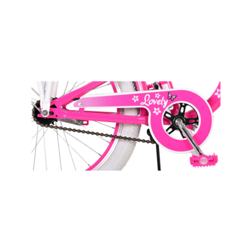 Laat je kind moeiteloos naar school fietsen met de Volare Lovely 20 inch kinderfiets, nu verkrijgbaar bij ons! Veiligheid staat voorop, daarom is deze stoere fiets uitgerust met zowel een handrem als een terugtraprem, en een gesloten kettingkast. De reflectoren in de wielen zorgen voor extra zichtbaarheid, terwijl de praktische bel voor een duidelijk signaal zorgt. Comfortabel fietsen is gegarandeerd dankzij de handige achterdrager, een zacht zadel en een stevige standaard die de fiets stabiel houdt. Verstelbaarheid van het zadel en stuur maakt de fiets geschikt voor groeiende avonturiers. Kortom: een betrouwbare fiets van topkwaliteit voor een zeer betaalbare prijs, nu verkrijgbaar!