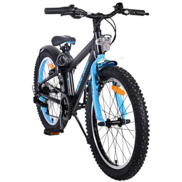 Stap in de wereld van avontuurlijk fietsen met de Volare Rocky 20 inch kinderfiets, verkrijgbaar bij Gamma! Veiligheid staat voorop met twee handremmen, reflectoren in de wielen, voor- en achterop de fiets, verlichting, een handig slot en een vrolijke bel. Geniet van het comfort van het extra lichte aluminium frame, het zachte zadel en de stoere extra brede banden. Deze satijnzwarte fiets met blauwe accenten is uitgerust met 6 versnellingen en een standaard voor extra gemak. Met een extra lange zadelpen groeit de fiets mee met je kind, zodat je er nog vele avonturen mee kunt beleven!