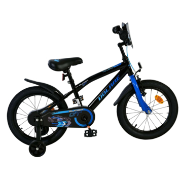 Maak van leren fietsen een feestje met de Volare Super GT 16 inch kinderfiets, nu verkrijgbaar bij Gamma! Veiligheid staat voorop met een handrem, terugtraprem, gesloten kettingkast en afneembare zijwieltjes. Met reflectoren in de wielen, voor- en achterop de fiets, en een leuke bel, ben je altijd goed zichtbaar en hoorbaar onderweg. Comfortabel en stoer, de zwarte Volare fiets met blauwe accenten heeft een zacht zadel en een uniek frame dat tegen een stootje kan. Verstelbare hoogtes voor zadel en stuur zorgen ervoor dat de fiets met je kind meegroeit, zodat ze er extra lang van kunnen genieten. En met inbegrepen montagemateriaal is deze fiets snel en gemakkelijk in elkaar te zetten, klaar voor vele avonturen!