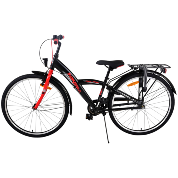 Ontdek de Volare 26 inch Thombike bij Gamma - een combinatie van topkwaliteit en modern design! Veiligheid staat voorop met een handrem, terugtraprem en batterijverlichting voor en achter. Met een leuke bel en reflectoren in de wielen ben je altijd goed zichtbaar en hoorbaar onderweg. Deze mooie zwarte Volare fiets met rode accenten biedt niet alleen veiligheid, maar ook comfort, met een luxe zacht zadel, 3 versnellingen van Shimano, extra zachte handvaten, een handige achterdrager en een stevig frame dat tegen een stootje kan. Met een standaard en een sterk slot is deze fiets compleet uitgerust. Dankzij de extra lange zadelpen groeit de fiets nog langer mee met je kind, en ook het stuur is in hoogte verstelbaar voor optimaal comfort.