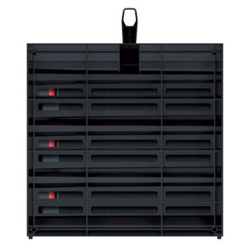 Deze robuuste opbergkast is uitgerust met drie horizontaal geplaatste TAGER-serie organizers (afmeting 390 x 284 x 60 mm), elk voorzien van 12 verplaatsbare scheidingswanden, zodat je de indeling helemaal naar wens kunt aanpassen. Geen gerommel meer in bakjes of losse dozen – alles ligt netjes op zijn plek.