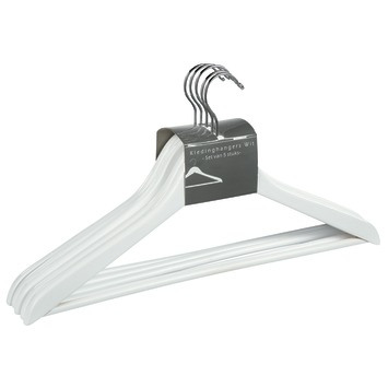 Hang uw kleding kreukloos op aan de Kledinghanger Wit Set van 5st. Deze set bestaande uit 5 praktische kledinghangers, is vervaardigd uit hoogwaardig hout en geschikt voor het ophangen van tal van kledingstukken, zoals jassen, blouses, truien, hemden, jurken, t-shirts en sweaters. Met behulp van de haak kan de Kledinghanger Wit Set van 5st opgehangen worden aan roedes, kledingrekken en kapstokken. De kledinghangers zijn leverbaar in de kleur wit. Kortom, kleding hangt u snel en makkelijk op met Kledinghanger Wit Set van 5st.
