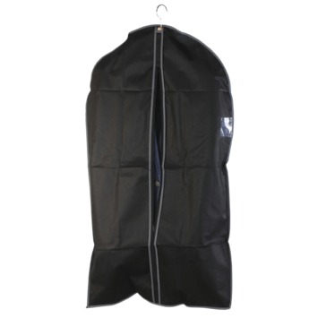 Compacte hoes in donker grijs om kleding op te bergen in de kast of op een rek. De hoes vrijwaart de kleding van stof en licht. De stof is in non-woven 100% polypropyleen