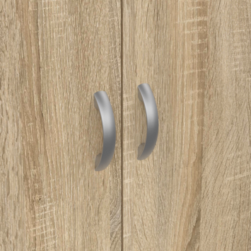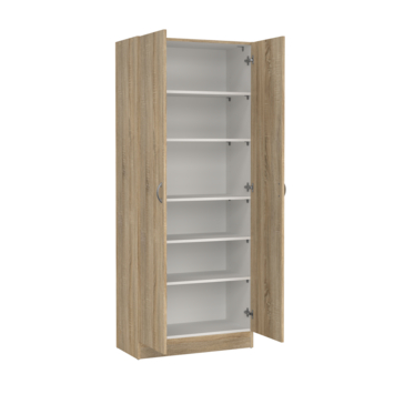 Achter de twee deuren bevinden zich vijf legplanken. Deze praktische indeling maakt de kast geschikt voor het opbergen van kleding, linnengoed of schoenen. Ondanks zijn compacte afmetingen van 170 x 70 x 35 cm, biedt Fabian verrassend veel ruimte.