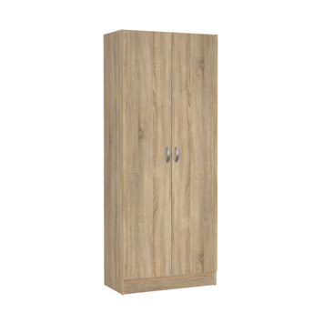 De kledingkast 2-deurs Fabian eiken hout 170 x 70 x 35 cm is een praktische en compacte kast voor extra bergruimte in huis. Dankzij de warme eiken kleur past de kast in uiteenlopende woonstijlen en is hij geschikt voor gebruik in slaapkamer, logeerkamer of hal. Met zijn slimme indeling kun je kleding en accessoires overzichtelijk opbergen.