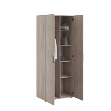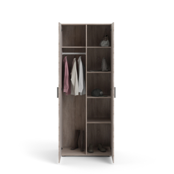 Met de garderobekast Pisa haal je veel opbergruimte in huis. Deze eenvoudig in elkaar te zetten 2-deurs kledingkast bevat 1 roede om kledij op te hangen en 5 legplanken. De kast is FSC gecertificeerd en past perfect in elke kamer en elk interieur. Ook verkrijgbaar in andere kleuren en formaten.