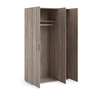 Met de garderobekast Pisa haal je veel opbergruimte in huis. Deze eenvoudig in elkaar te zetten 3-deurs kledingkast bevat 1 roede om kledij op te hangen en 5 legplanken. De kast is FSC gecertificeerd en past perfect in elke kamer en elk interieur. Ook verkrijgbaar in andere kleuren en formaten.