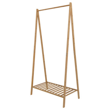Het Bram kledingrek is het ideale rek om kleding aan op te hangen. Hij is gemaakt van bamboe en heeft daardoor een mooie natuurlijk uitstraling. Met het rekje onder het hanggedeelte kan je ook nog schoenen kwijt. Het perfecte rek om jouw mooiste kledingstukken te laten zien.